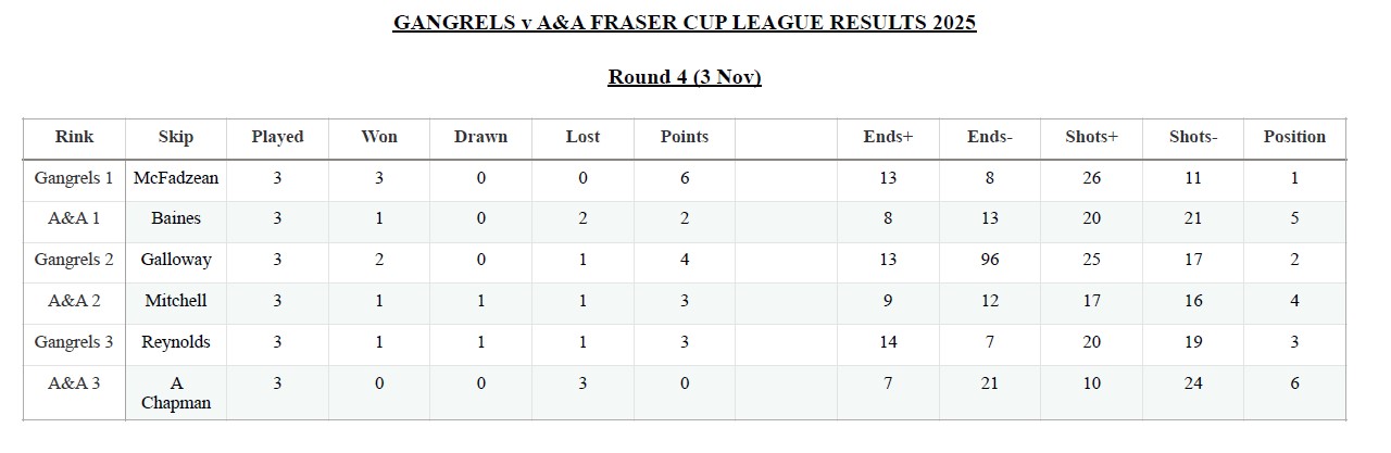 fourth round of the Fraser Cup League took place at Greenacres on Mon 3