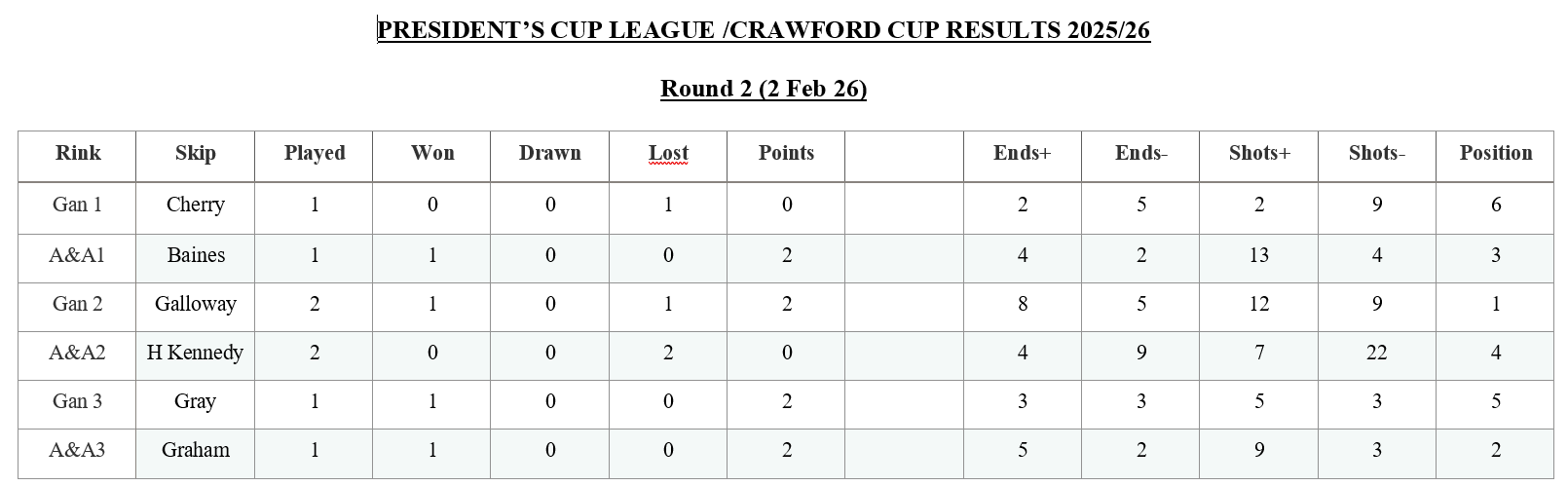 (GCC/A&A) and Crawford Cup (A&A) on Mon 2 Feb.
