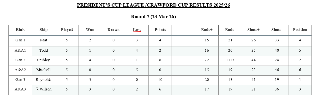 final round of the President's/Crawford Cups was played on Mon 23 Mar
